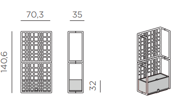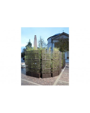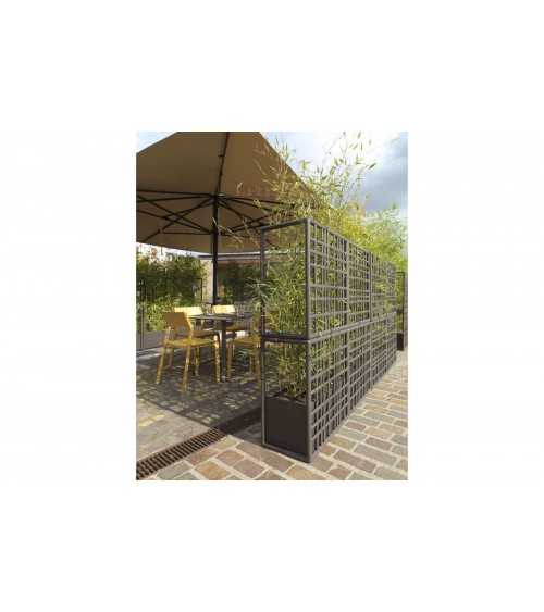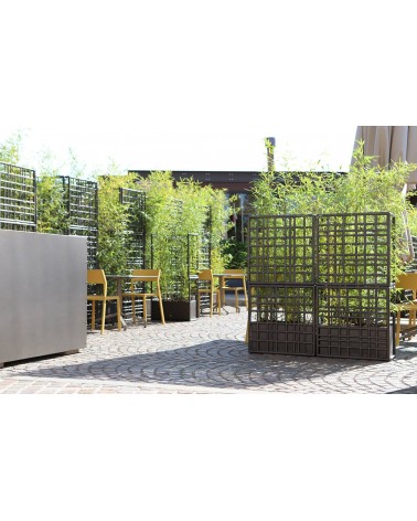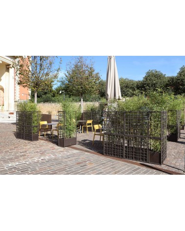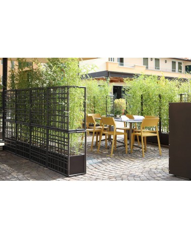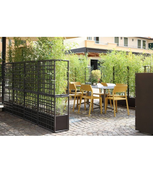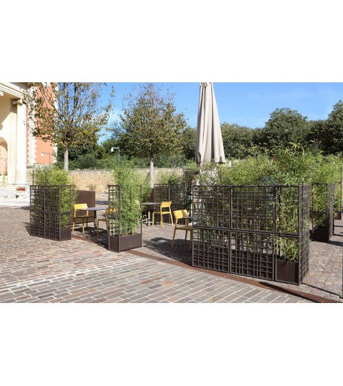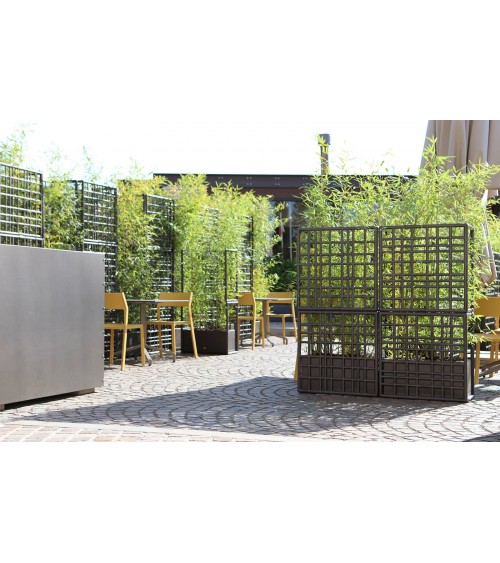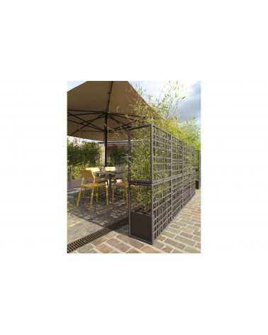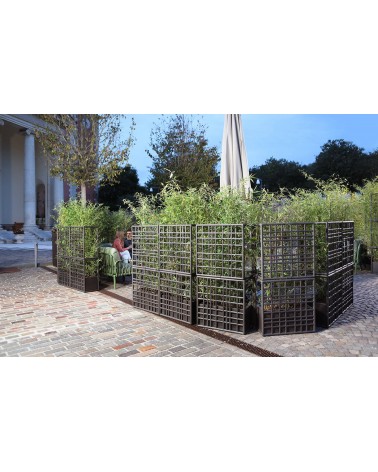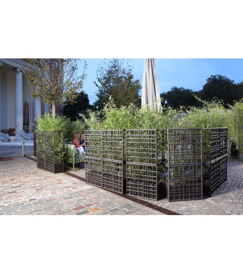 Sipario è un sistema modulare di pareti divisorie per esterno in plastica rigenerata con fioriera auto-irrigante. Caratterizzati da un disegno a rete asimmetrico, i moduli consentono di creare configurazioni lineari, spezzate e curve.